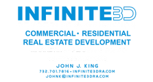 At INFINITE3D RENDERING & ANIMATION, my mission is to create highly detailed site plan/architectural 3D rendering and animation presentations utilizing the latest innovative software for my client's marketing and plan approval process needs.